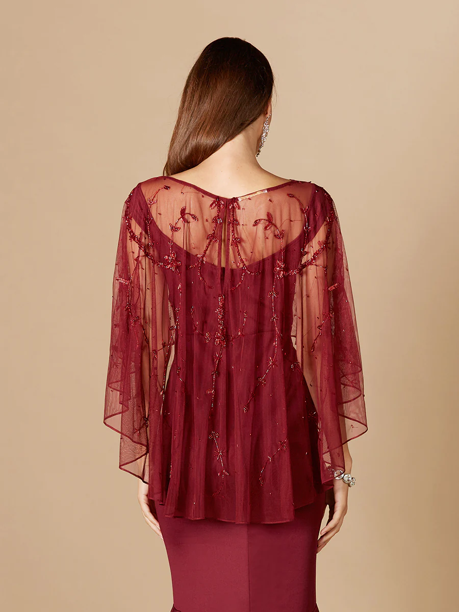 Perfect as a versatile accessory, this sheer beaded capelet pairs effortlessly with evening gowns, cocktail dresses, bridal gowns, and formal outfits. Whether styled for a wedding, bridal event, gala, or special celebration, this elegant capelet adds dimension, texture, and a polished finishing touch to your look. Designed for effortless styling, it’s an ideal choice for those seeking light coverage with a modern, fashion-forward accent.